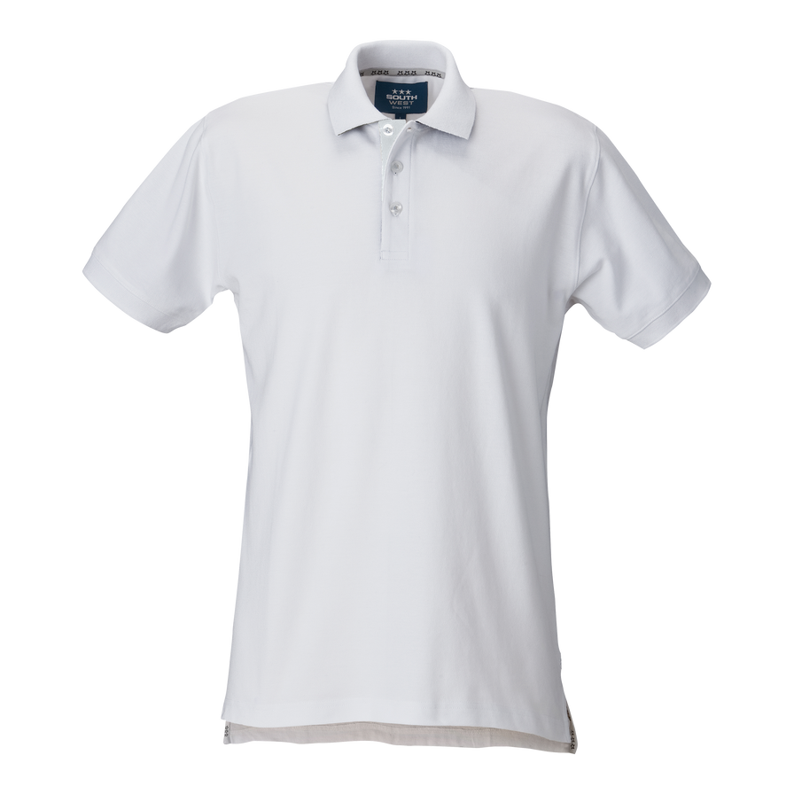 Piké med dekorativt band i nacke och sprund. Halvmånesöm i nacken. Knappslån har knappar som går ton i ton, fiskbensmönstrad insida samt diskret brodyr ovanför sprund.