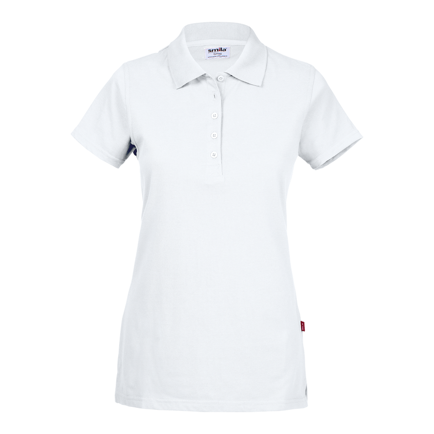 Kortärmad figurnära piké i dampassform med 5 knappar ton-i-ton i smal knappslå. Halvmåne i nacken med diskret brodyr. Sprund nedtill i sidosöm för extra komfort. Längd mitt bak 68 cm i storlek M.