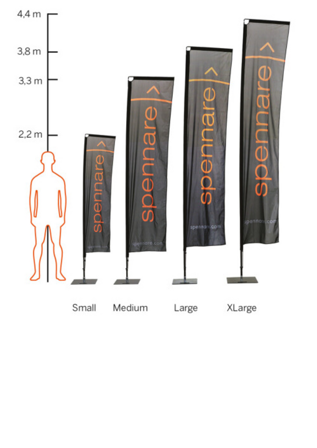 Observera att det finns en skillnad mellan flaggans storlek och den totala höjden, inklusive både flagga och mast.