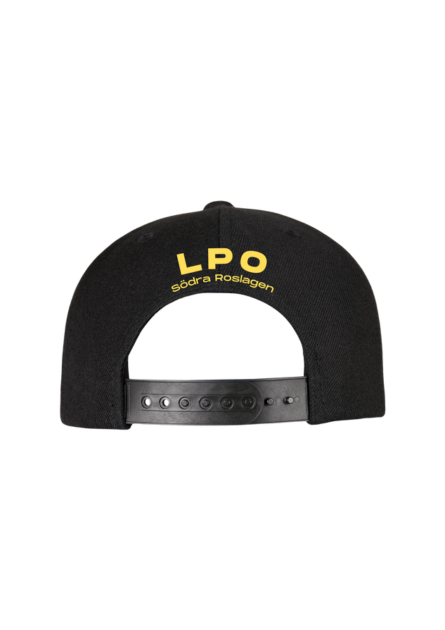 Flatpeak keps med rätt stuk i stabil polyester. Förstärkt front och platt skärm, snap-back i plast för reglering av storlek. One size.