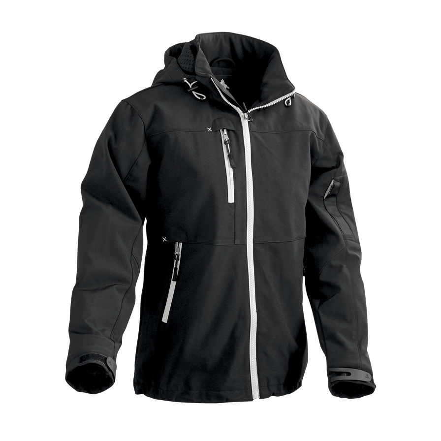Dam softshelljacka med löst hängade innerfoder i Mesh/Nylon för bästa komfort. Vindtät samt vattenavvisande. Två sidfickor och en bröstficka samt avtagbar huva.