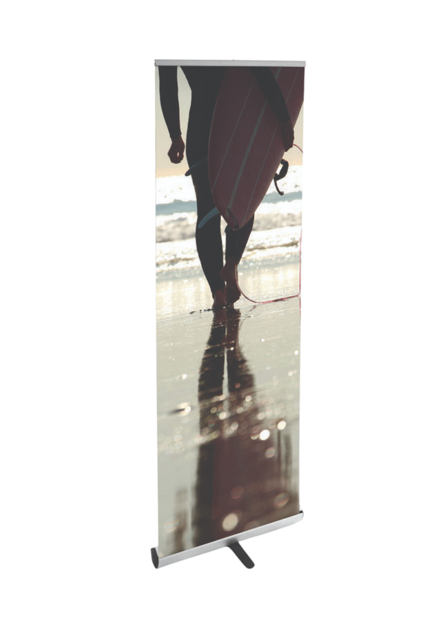 Marknadens smidigaste och smäckraste rollup, speciellt framtagen för låg vikt och långvarigt användande. Roll Up Penta är funktionell med patenterad design. En specialutvecklad fjäder gör det lika lätt att dra upp bildvåden, från botten till toppen, som att rulla ihop rollupen. Den luftdämpade teleskoppinnen gör det möjligt att variera höjden och med klämprofilen i toppen är det lätt att byta budskap. Levereras i en bärväska.